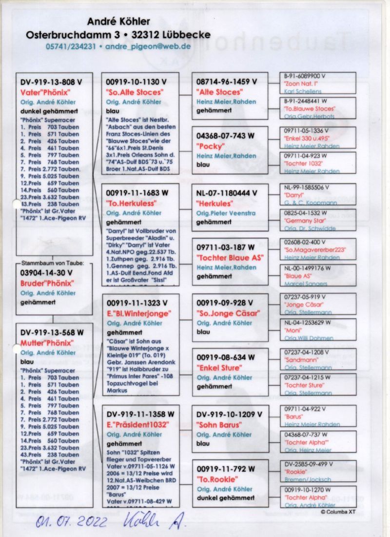 DV-03904-14-30 oryg. Andre Kohler; Brat z gniazda najlepszego lotnika i rozpłodowca PHONIXa