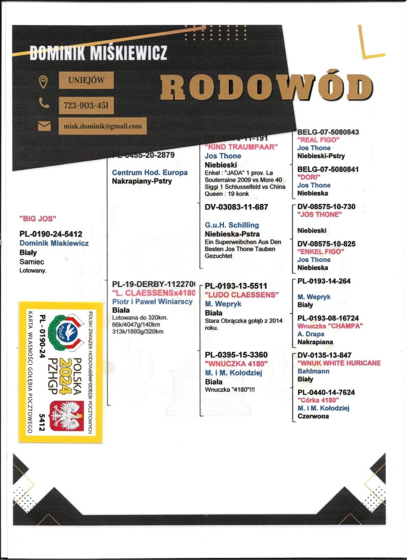 Hodowca - rasa: Oryg. Dominik Miśkiewicz