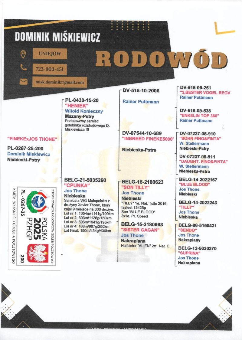 Hodowca - rasa: Oryg. Dominik Miśkiewicz