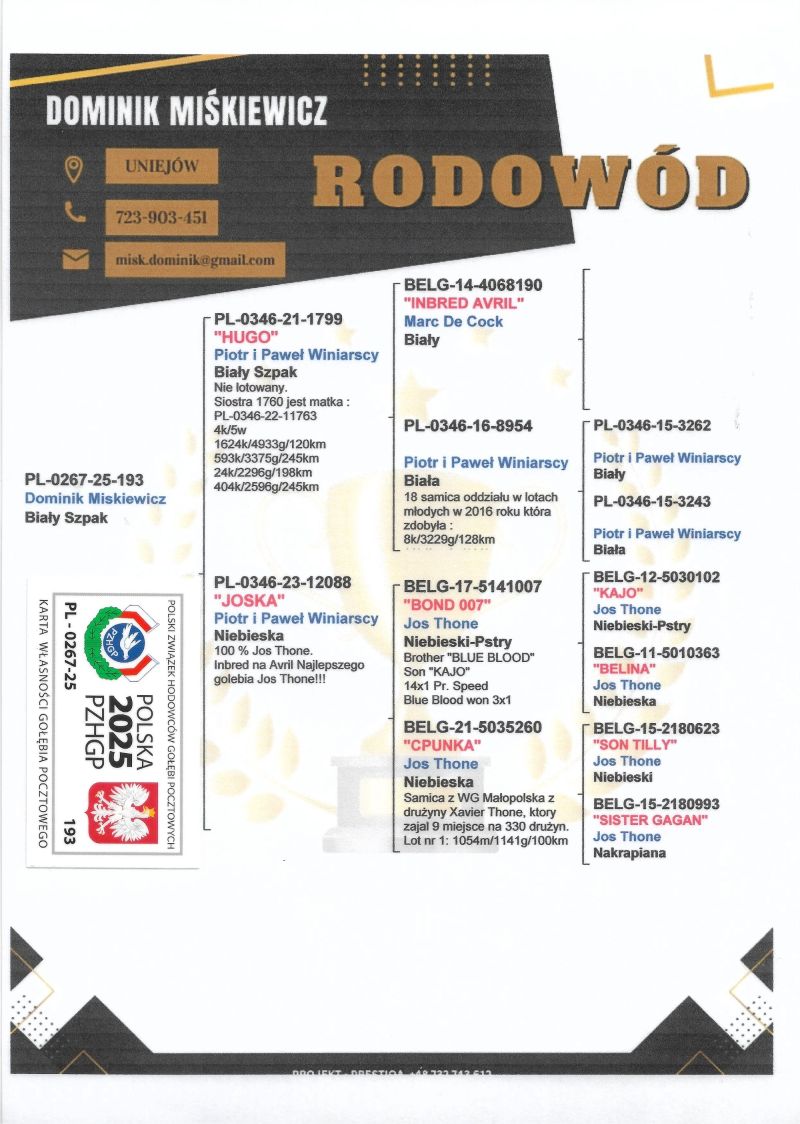 Hodowca - rasa: Oryg. Dominik Miśkiewicz