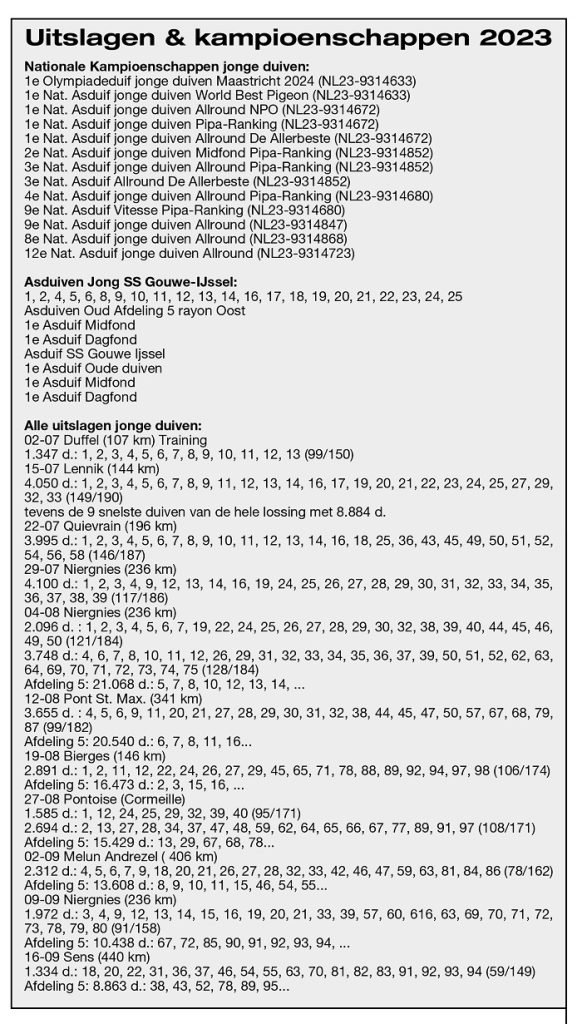 PL-0287-25-8350 - Potomek najlepszych gołębi z hodowli Willem de Bruijn
