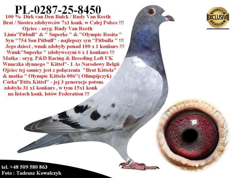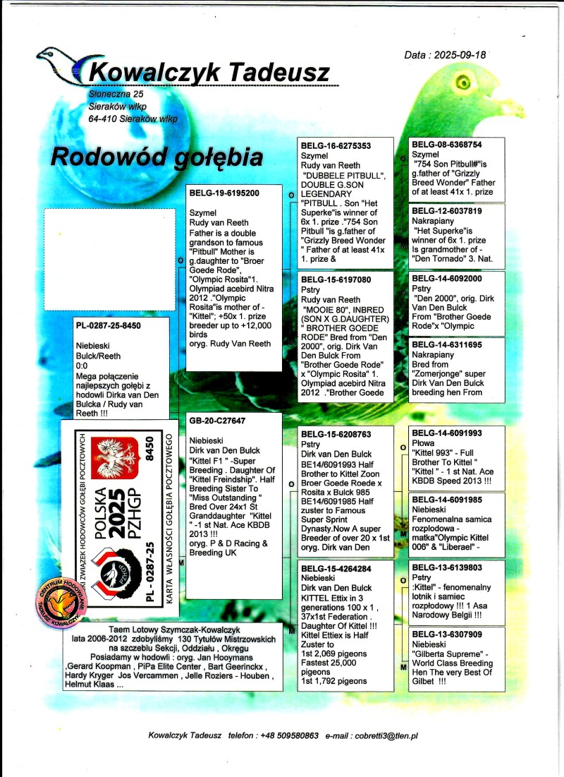 PL-0287-25-8450 - Mega połączenie gołębi z linii "Pitbull" & "Kittel" van Den Bulcka