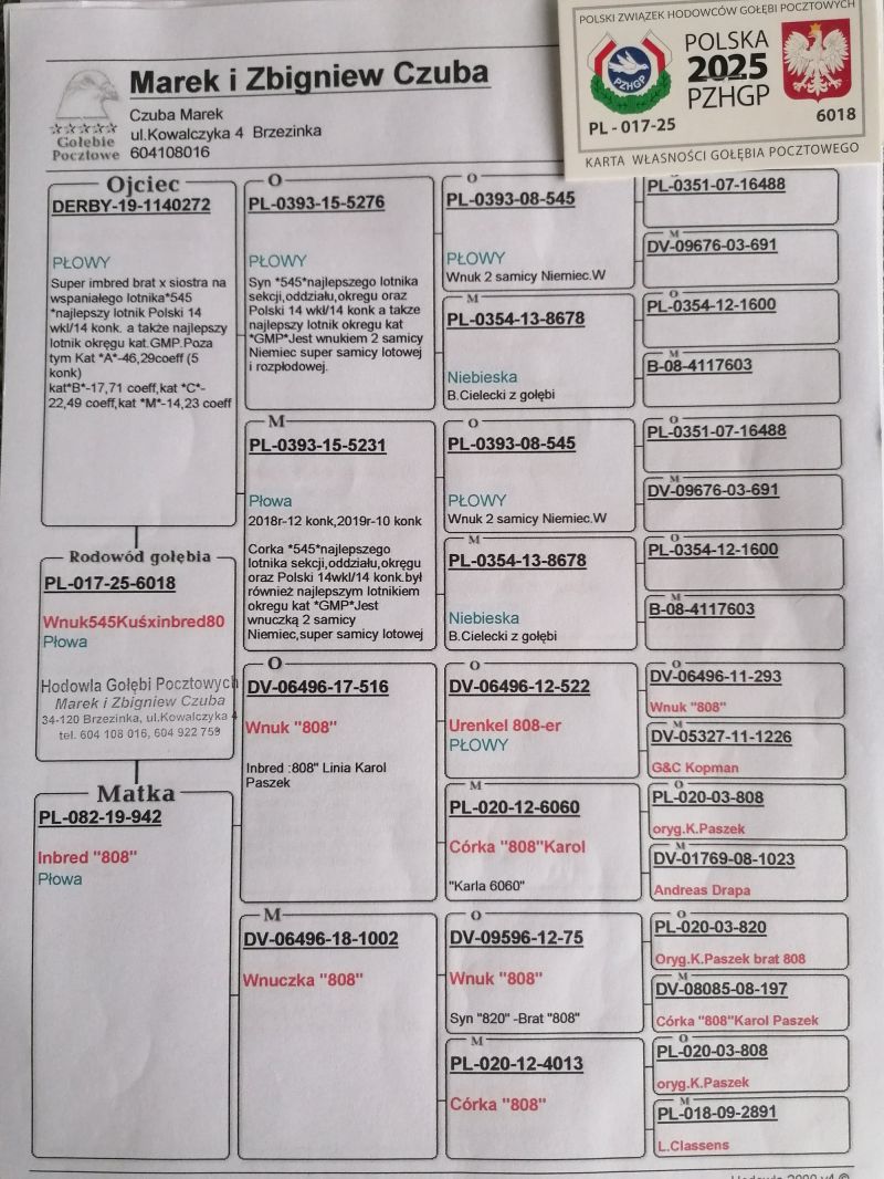 PL-017-25-6018 Podwójny Wnuk 545 K.Kuś x Inbred 808 K. Paszek