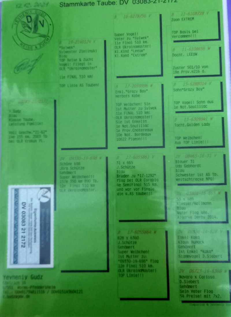Opis: Oryginalny gołąb z hodowli Yevheniy Gudz. Gołąb płodny i zdrowy. Szczegóły pochodzenia w rodowodzie. Więcej informacji pod nr tel.: 883739561 **możliwość wysyłki blablacarem lub kurierem