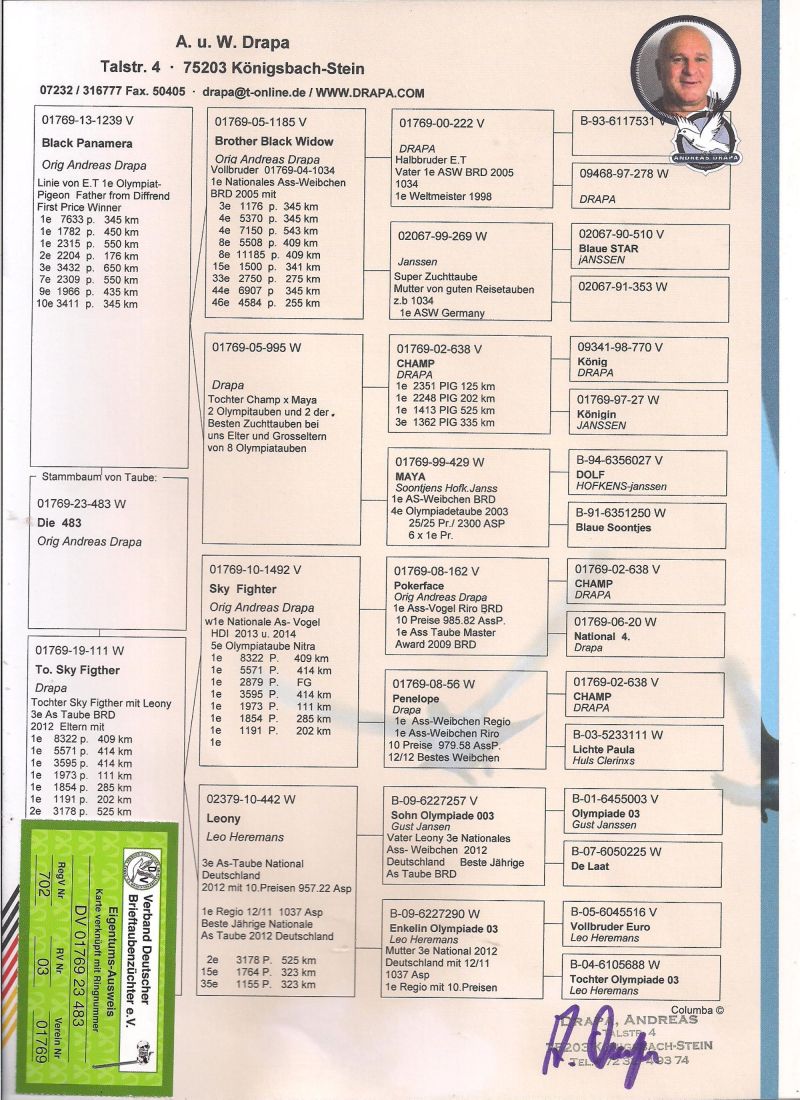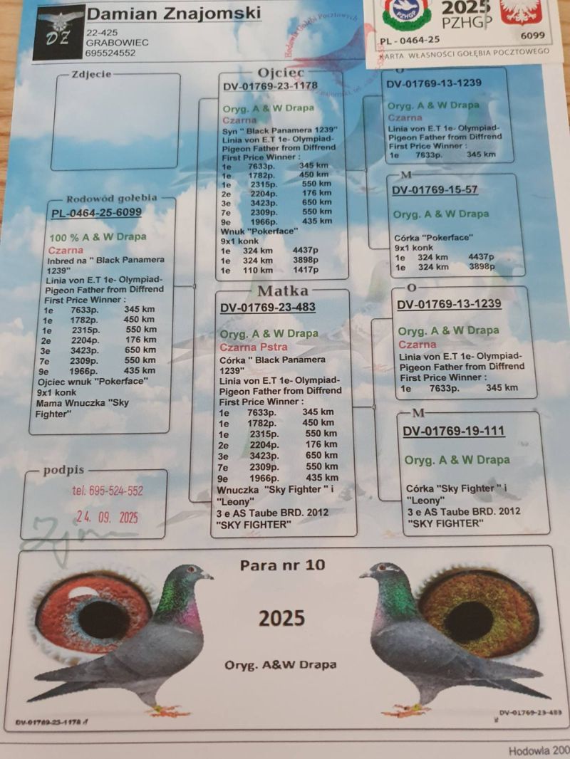 Opis: Oryginalny gołąb z hodowli Damian Znajomskiego . Wychowany w boksie indywidualnym z możliwością zbadania pokrewieństwa. Zaszczepiony Columba PHA. Możliwy transport POLSKA NIEMCY BELGIA HOLANDIA AUSTRIA ANGLIA. Tylko opcja KUP TERAZ. Tel. 695-524-552