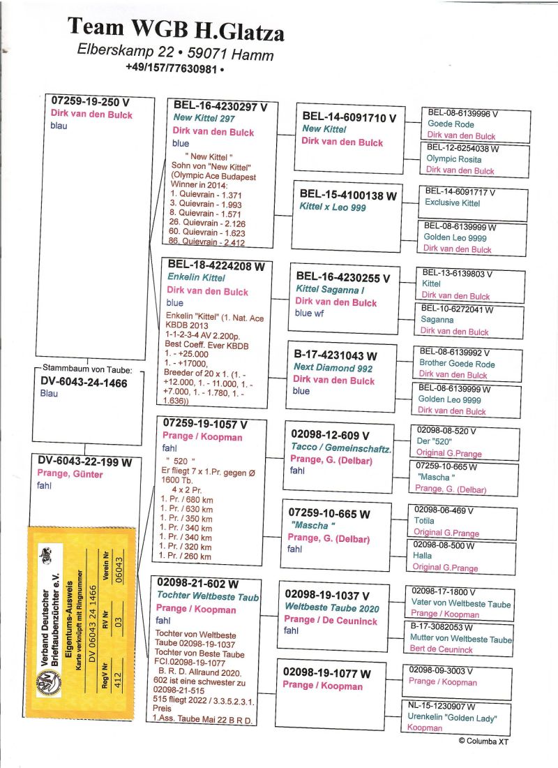 Opis: Wiecej informacji w rodowodzie oraz pod nr telefonu 663602297 Grzegorz. TRANSPORT GRATIS tylko i wyłącznie po wpłacie na konto !!! , płatność przy odbiorze koszt 200 zł dostarczenia paczki. Gołąb zostanie dostarczony w jak najszybszym terminie nie dluższym niż 14 dni po zakończonej aukcji.