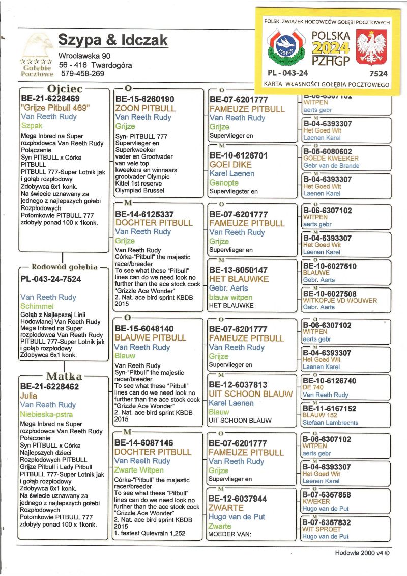 Opis: Wiecej informacji w rodowodzie oraz pod nr telefonu 663602297 Grzegorz. TRANSPORT GRATIS tylko i wyłącznie po wpłacie na konto !!! , płatność przy odbiorze koszt 200 zł dostarczenia paczki. Gołąb zostanie dostarczony w jak najszybszym terminie nie dluższym niż 14 dni po zakończonej aukcji.
