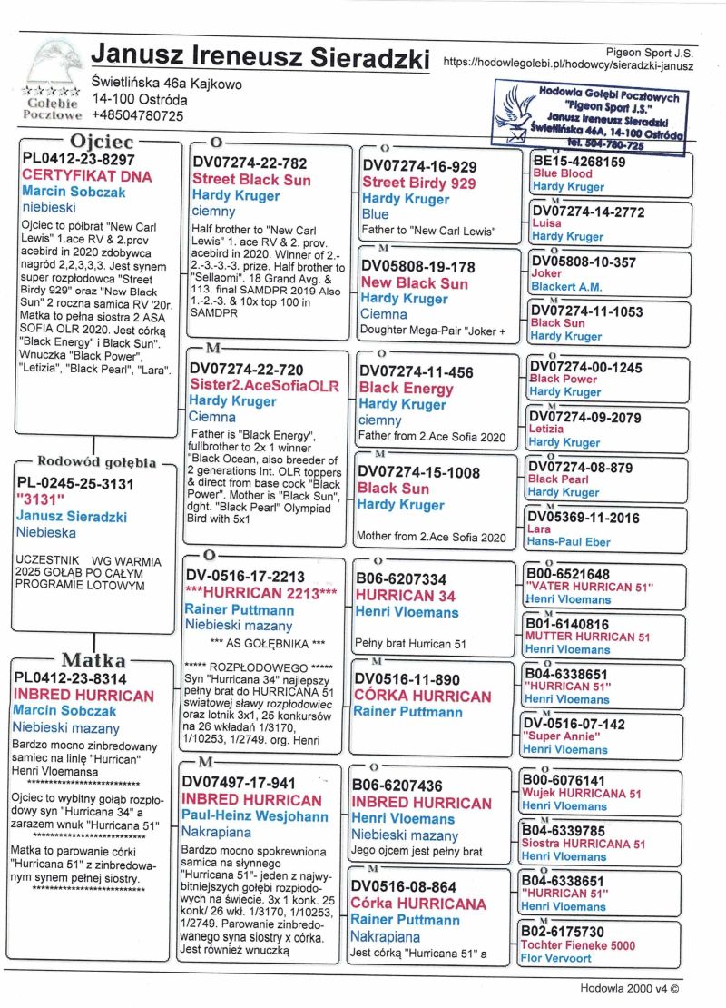 Opis: Uczestnik WG Warmia 2025, sezon VIII. Loty z kierunku północny wschód, Litwa. Wrócił po Finale, 112 AS. Szczegóły pochodzenia w rodowodzie.