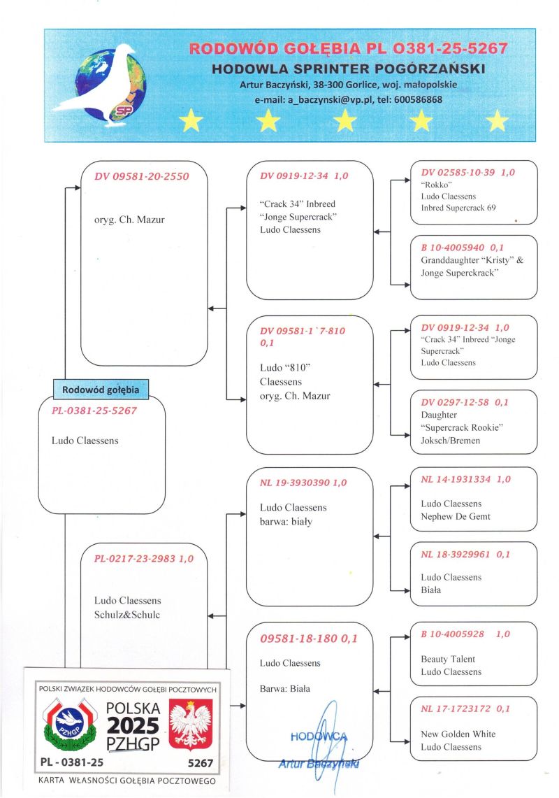 Opis: Oryginalny gołąb z hodowli Artura Baczyńskiego. Szczegóły pochodzenia w rodowodzie. Sprzedaż z powodu likwidacji hodowli z przyczyn osobistych. Po zakończonej aukcji odbiór gołębia na miejscu w Gorlicach (woj. małopolskie) lub wysyłka kurierem po otrzymaniu przelewu na konto. Koszt wysyłki 150 zł (od 1 do 6 gołębi w jednej paczce).