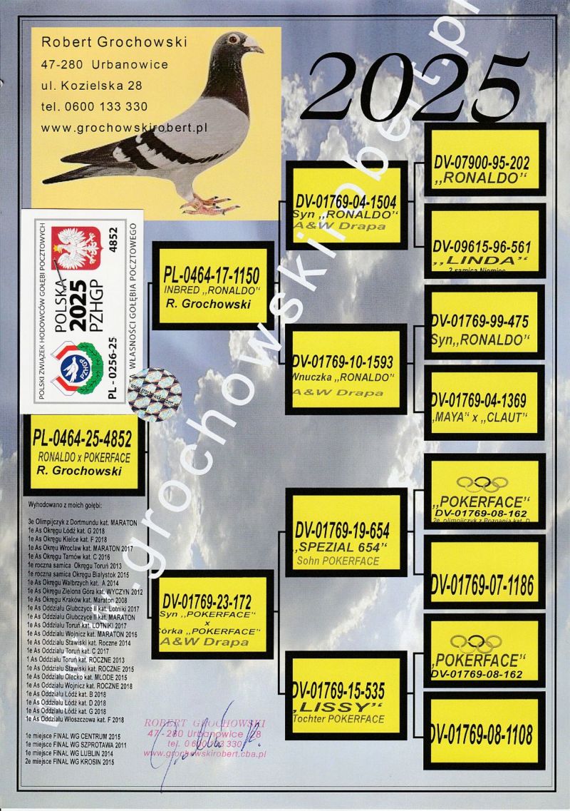 Opis: Oryginalny gołąb z hodowli Roberta Grochowskiego. Szczegóły pochodzenia w rodowodzie. Gołąb to prawdopodobnie SAMICA. Więcej informacji pod numerem 600133330 Przy opcji "KUP TERAZ" transport GRATIS (do najbliższego miasta od kupującego).