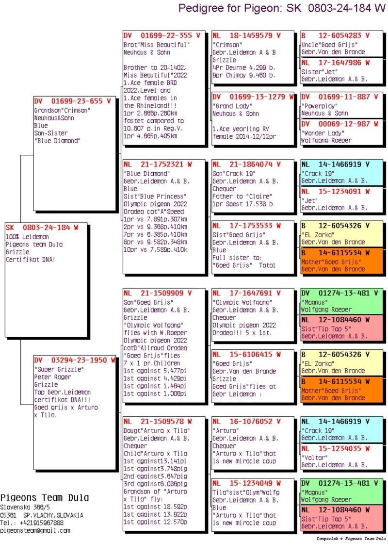 PL-0155-25-702 - 100% Leideman - Linia Topowych gołębi braci Leideman - Goed Grijs, Olympic Wolfgang, Arturo x Tila