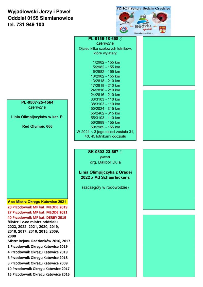 Opis: Młode po najlepszych parach rozpłodowych oraz z gołębi lotowych, których rodzeństwo i rodzice nieprzerwanie w latach 2016-2025 zdobyło w sumie 9 lat z rzędu Mistrzostwo Oddziału w lotach gołębi młodych, kilkukrotnie Mistrzostwo oraz v-ce mistrzostwo rejonu, oraz wiele czołowych pozycji we współzawodnictwie Okręgu Katowice oraz MP co widać w zamieszczonych załącznikach. Wszystkie młode zaszczepione szczepionką RP Vacc. Możliwość wysyłki na warunkach kurierów świadczących usługi przewozu gołębi po wcześniejszym ustaleniu szczegółów (koszt około 150 zł za paczkę do 4 szt.) oraz odbiór osobisty. Telefon kontaktowy 731 949 100.
