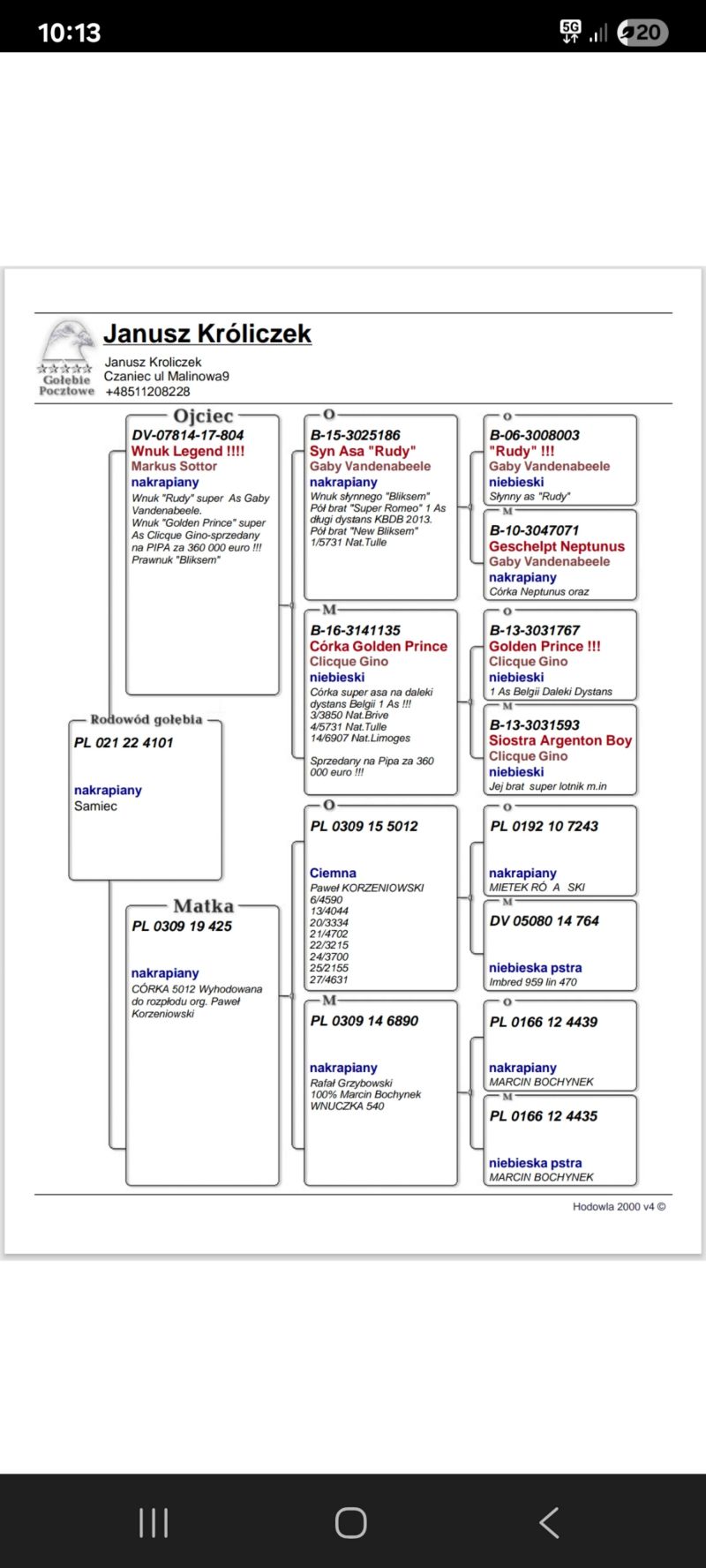 Opis: Sprzedam oryginalnego gołębia Janusz Króliczek super samiec rozplodowy więcej info w rodowodzie cała hodowla na sprzedaż zapraszam na moje aukcje