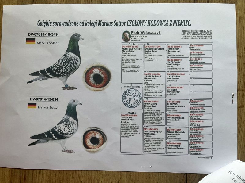 Opis: Oryginalny gołąb z hodowli Piotra Walaszczyka. 1 lotnik Oddziału 5 wkł / 5konk. Więcej informacji w rodowodzie i pod nr tel. 530131812 **wysyłka kurierem ok 150 zł
