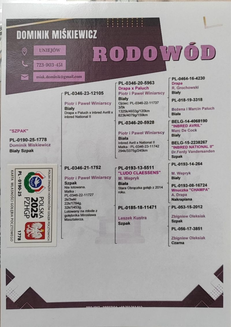 Hodowca - rasa: Oryg. Dominik Miśkiewicz