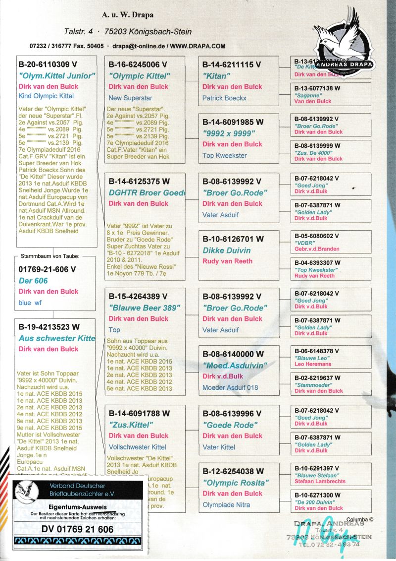 Opis: Oryginalny gołąb z hodowli A. & W. Drapa. Więcej informacji w rodowodzie i pod nr tel. 886 478 019