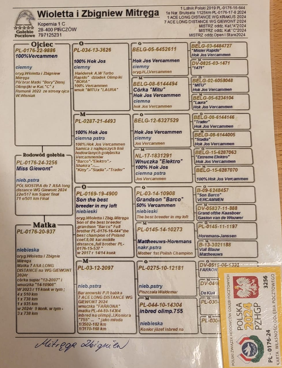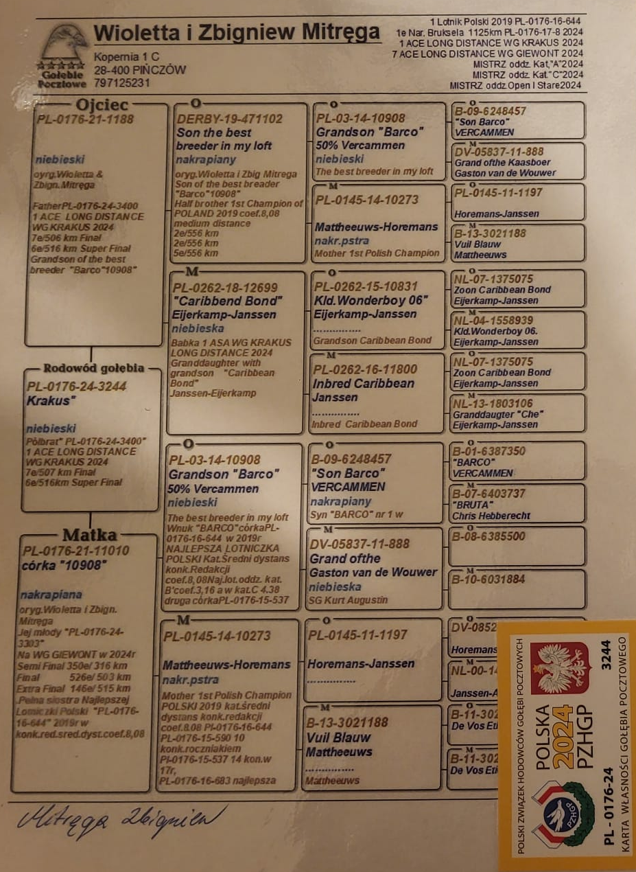 Opis: Gołąbek z MWG Carpatia, po całym sezonie lotowym 2025. Drużyna: Jarosław Woźnicki I, 177 z 185 km i 298 z 355 km. Zorganizowaliśmy 9 lotów treningowych do 92km oraz 7 lotów konkursowych od 105 do 445km, a także ekstra finał z odległości 505km. Ptaki łącznie zrobiły 2153km, a niektóre nawet 2658km. Cały sezon był ciężki i wymagający, więc wszystkie ptaki, które sobie poradziły są warte i cenne uwagi. Więcej informacji pod numerem 783-265-592. Transport 100 zł do 2szt. Do 3-4szt - 150zł. Powyżej 5szt - 200zł. Zapraszamy do udziału w edycji 2026 :)
