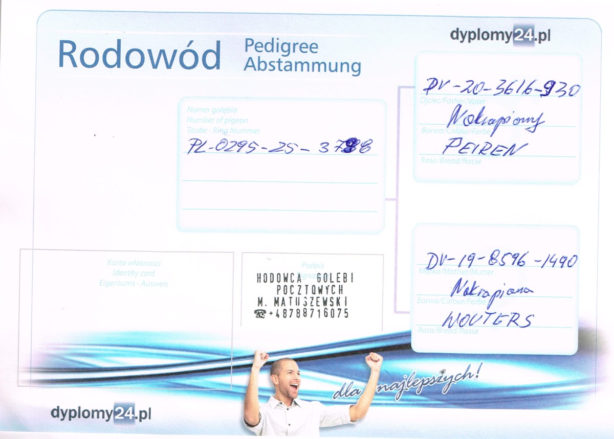 Opis: Gołąbek z MWG Carpatia, po całym sezonie lotowym 2025. Drużyna: Zbigniew Krupiński A, 138 z 505 km i 182 z 120 km. Zorganizowaliśmy 9 lotów treningowych do 92km oraz 7 lotów konkursowych od 105 do 445km, a także ekstra finał z odległości 505km. Ptaki łącznie zrobiły 2153km, a niektóre nawet 2658km. Cały sezon był ciężki i wymagający, więc wszystkie ptaki, które sobie poradziły są warte i cenne uwagi. Więcej informacji pod numerem 783-265-592. Transport 100 zł do 2szt. Do 3-4szt - 150zł. Powyżej 5szt - 200zł. Zapraszamy do udziału w edycji 2026 :)