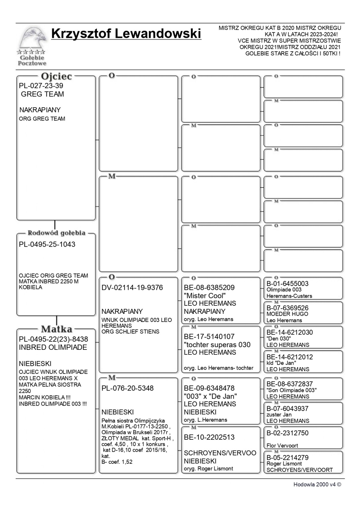 Opis: Gołąbek z MWG Carpatia, po całym sezonie lotowym 2025. Drużyna: MWG ROGOWO A, 180 z 505 km i 192 z FINAŁU!!. Zorganizowaliśmy 9 lotów treningowych do 92km oraz 7 lotów konkursowych od 105 do 445km, a także ekstra finał z odległości 505km. Ptaki łącznie zrobiły 2153km, a niektóre nawet 2658km. Cały sezon był ciężki i wymagający, więc wszystkie ptaki, które sobie poradziły są warte i cenne uwagi. Więcej informacji pod numerem 783-265-592. Transport 100 zł do 2szt. Do 3-4szt - 150zł. Powyżej 5szt - 200zł. Zapraszamy do udziału w edycji 2026 :)