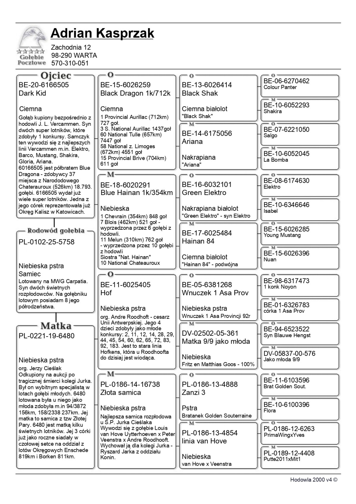 Opis: Gołąbek z MWG Carpatia, po całym sezonie lotowym 2025. Drużyna: Kasprzak Team 1, 23 z 120 km i 26 z 185 km. Zorganizowaliśmy 9 lotów treningowych do 92km oraz 7 lotów konkursowych od 105 do 445km, a także ekstra finał z odległości 505km. Ptaki łącznie zrobiły 2153km, a niektóre nawet 2658km. Cały sezon był ciężki i wymagający, więc wszystkie ptaki, które sobie poradziły są warte i cenne uwagi. Więcej informacji pod numerem 783-265-592. Transport 100 zł do 2szt. Do 3-4szt - 150zł. Powyżej 5szt - 200zł. Zapraszamy do udziału w edycji 2026 :)