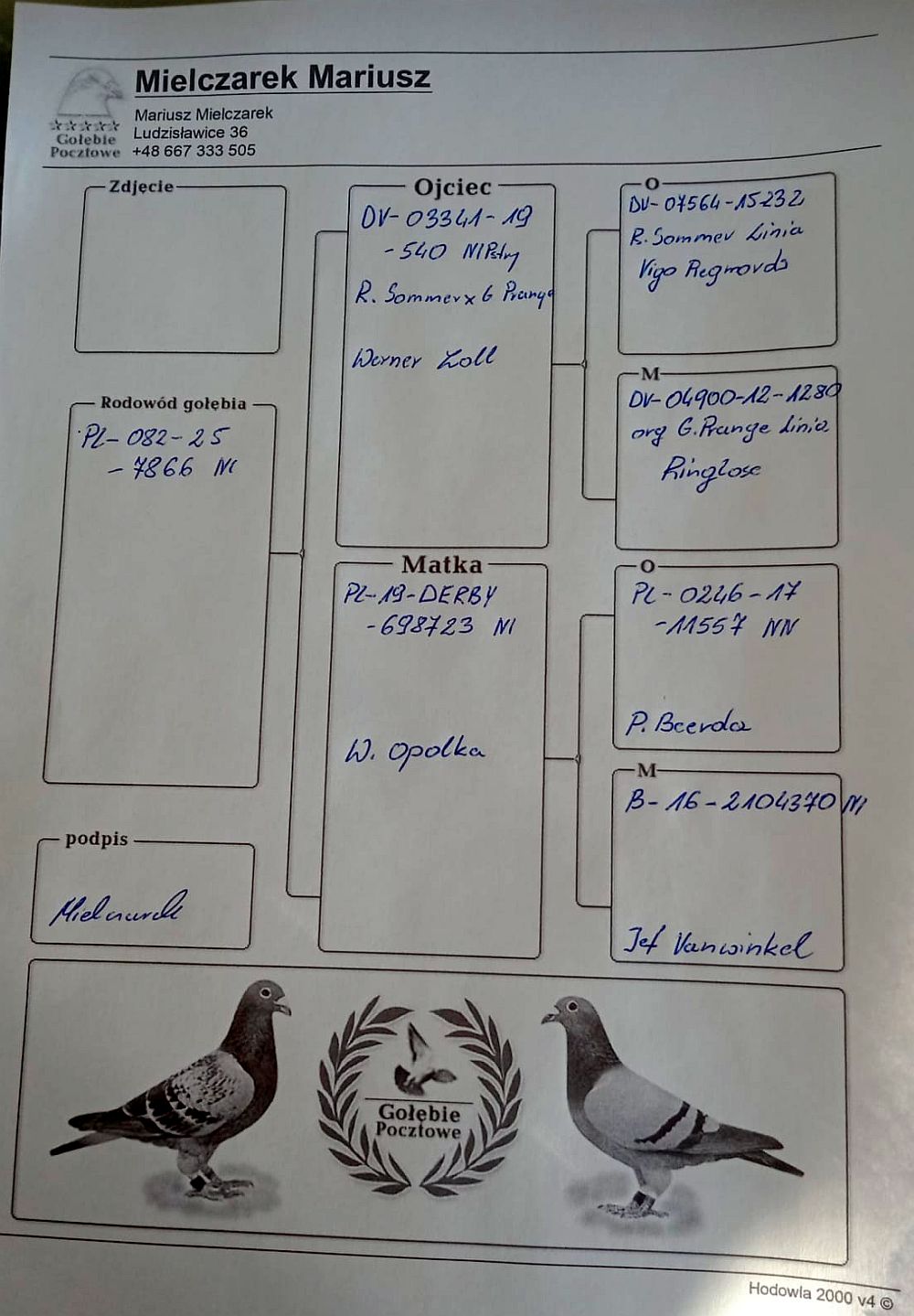Opis: Mariusz Mielczarek, 148 miejsce w klasyfikacji AS, 15 z finału, 94 z ekstra finału Gołąb uczestniczył w rywalizacji na WG Zatoka Puck 2025. Szczegóły pochodzenia w rodowodzie i załączonych materiałach. Wyniki lotowe w tabeli. Gołąb posiada tylko te materiały, które są widoczne na aukcji (karta własności, rodowód itp). Gołębie po zakończonej aukcji zostaną rozwiezione przez organizatora WG (koszt 150-200 zł w zależności od ilości gołębi i odległości), możliwy jest odbiór osobisty. Więcej informacji pod nr tel.: 503 164 320