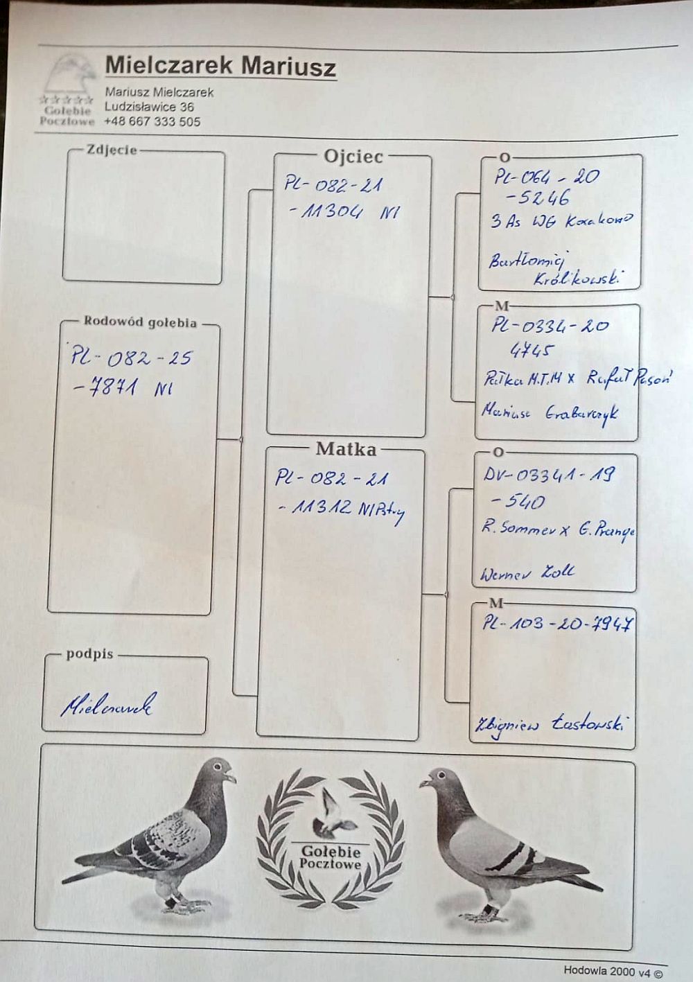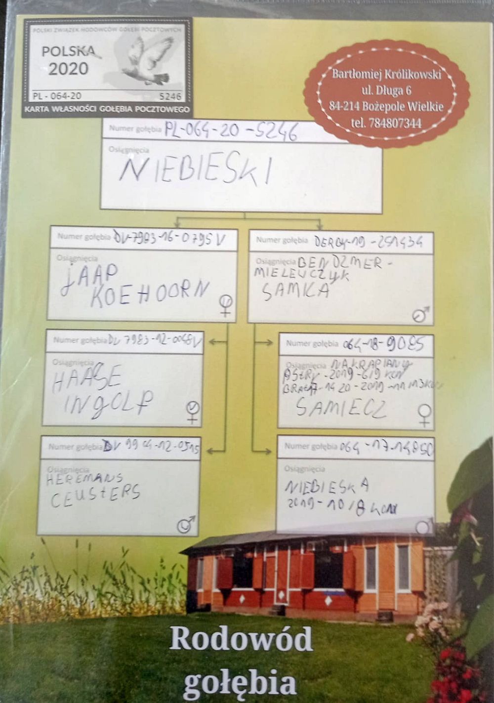 Opis: Wojciech Bogusławski, 335 miejsce w klasyfikacji AS, 146 z finału, 62 z ekstra finału Gołąb uczestniczył w rywalizacji na WG Zatoka Puck 2025. Szczegóły pochodzenia w rodowodzie i załączonych materiałach. Wyniki lotowe w tabeli. Gołąb posiada tylko te materiały, które są widoczne na aukcji (karta własności, rodowód itp). Gołębie po zakończonej aukcji zostaną rozwiezione przez organizatora WG (koszt 150-200 zł w zależności od ilości gołębi i odległości), możliwy jest odbiór osobisty. Więcej informacji pod nr tel.: 503 164 320