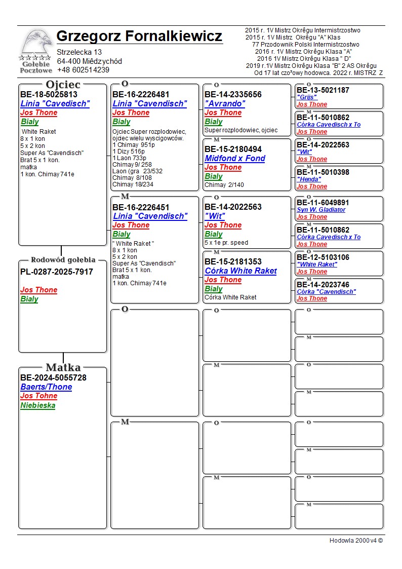 Hodowca - rasa: G. Fornalkiewicz