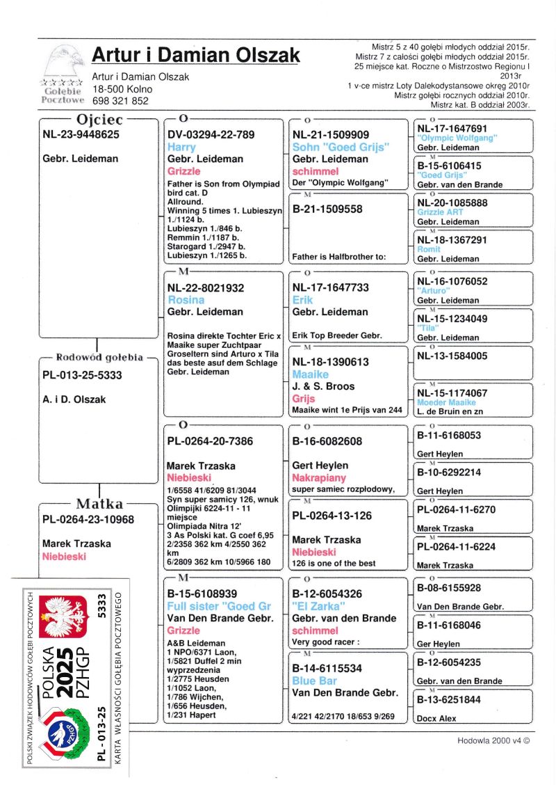 PL-013-25-5333 Linia zwycięzców prawnuk Goed Grijs 7x1 x córka siostry Goed Grijs