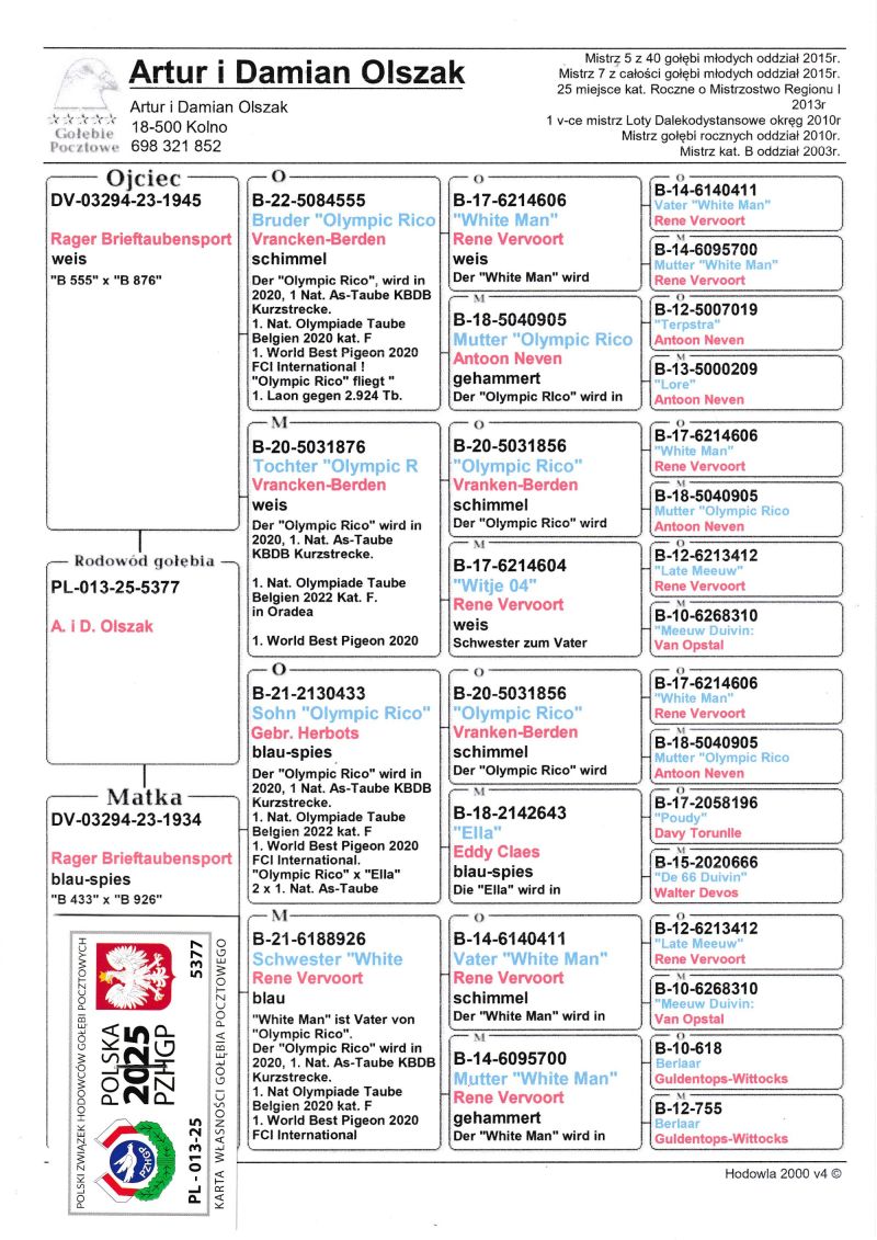 PL-013-25-5377 Mocny Inbred Olympic Rico 1 As Belgii w 2020. 3 miejsce na Olimpiadzie w Oradei w Rumunii 2022 roku