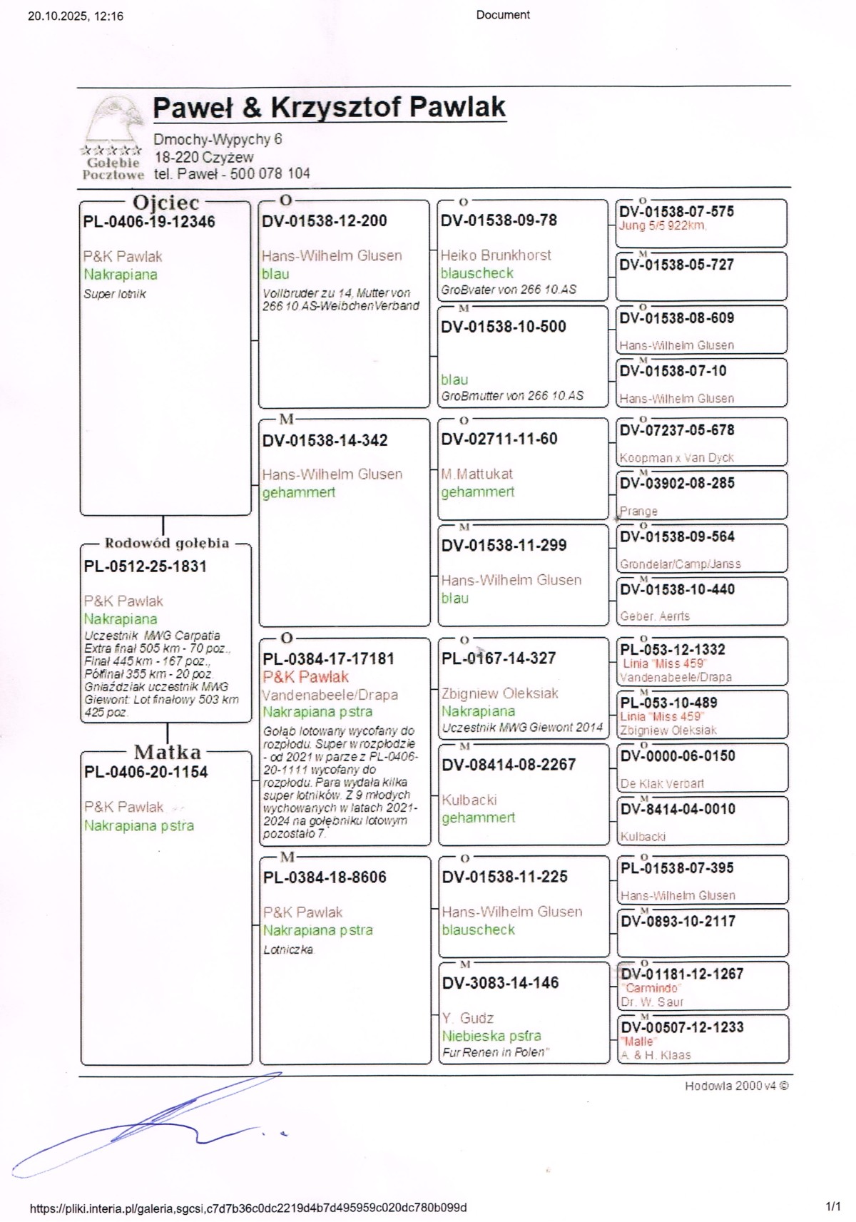 Opis: Gołąbek z MWG Carpatia, po całym sezonie lotowym 2025. Drużyna: Paweł i Krzysztof PAWLAK 2, 20 z 355 km i 70 z 505 km. Zorganizowaliśmy 9 lotów treningowych do 92km oraz 7 lotów konkursowych od 120 do 445km, a także ekstra finał z odległości 505km. Ptaki łącznie zrobiły 2153km, a niektóre nawet 2658km. Cały sezon był ciężki i wymagający, więc wszystkie ptaki, które sobie poradziły są warte i cenne uwagi. Więcej informacji pod numerem 783-265-592. Transport 100 zł do 2szt. Do 3-4szt - 150zł. Powyżej 5szt - 200zł. Gołąbki zostaną dostarczone do 14 dni po zakończeniu aukcji. Zapraszamy do udziału w edycji 2026 :)