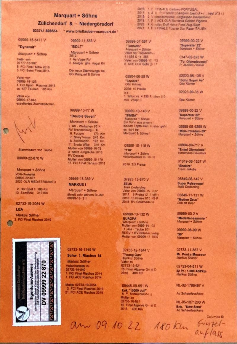 Opis: Oryginalny gołąb z hodowli Marquart + Söhne. Super Team lotujący na WG. Szczegóły pochodzenia w rodowodzie. Więcej informacji pod nr tel.: 530131812. **Wysyłka ok 150zł