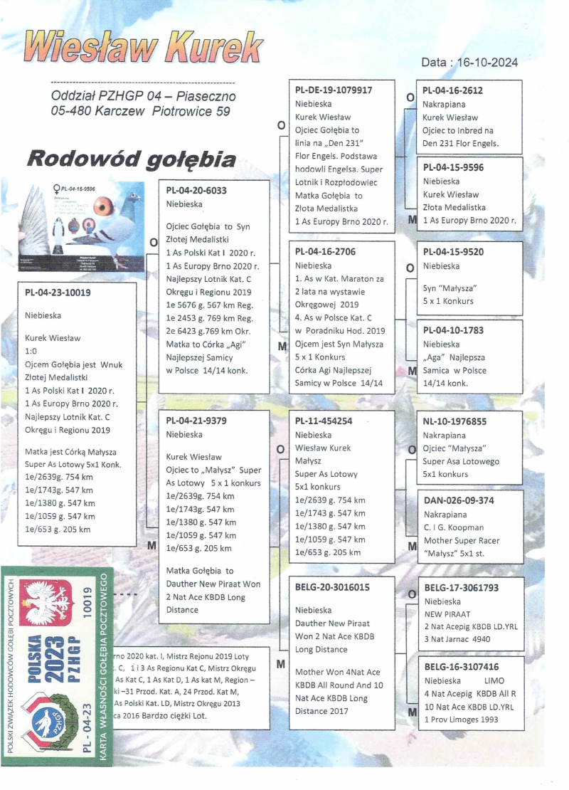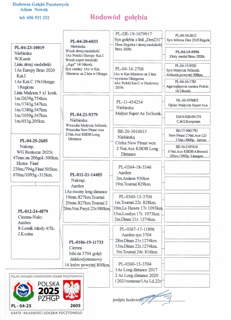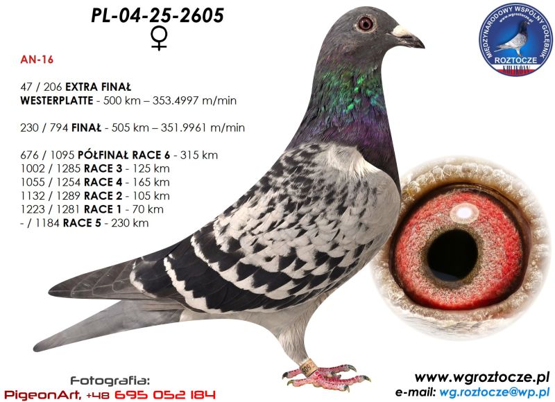 PL-04-25-2605 WG ROZTOCZE FINAŁ 230poz.505km Extra Finał 47poz.500km 2x500km