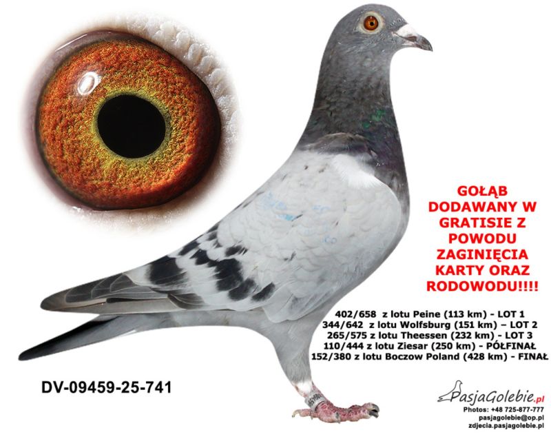 Osiągnięcia gołębi wypisane na zdjęciu.