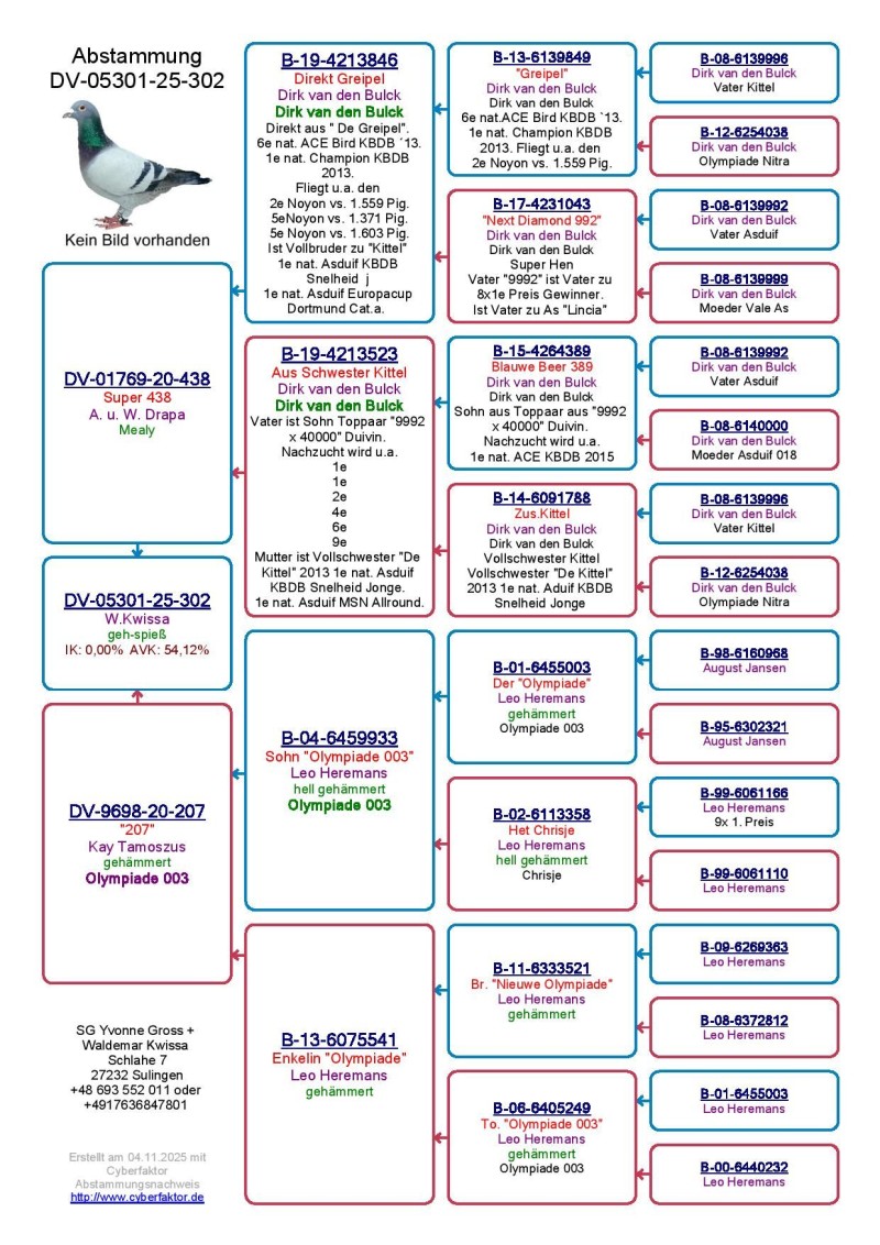Opis: Oryginalny gołąb z hodowli Waldemar Kwissa. Fajne połączenie. Szczegóły pochodzenia w rodowodzie, karty własności będą dołączone do rodowodów. Więcej informacji pod nr tel.: 693552011. Koszt wysyłki od 1 do 4 szt150 zł