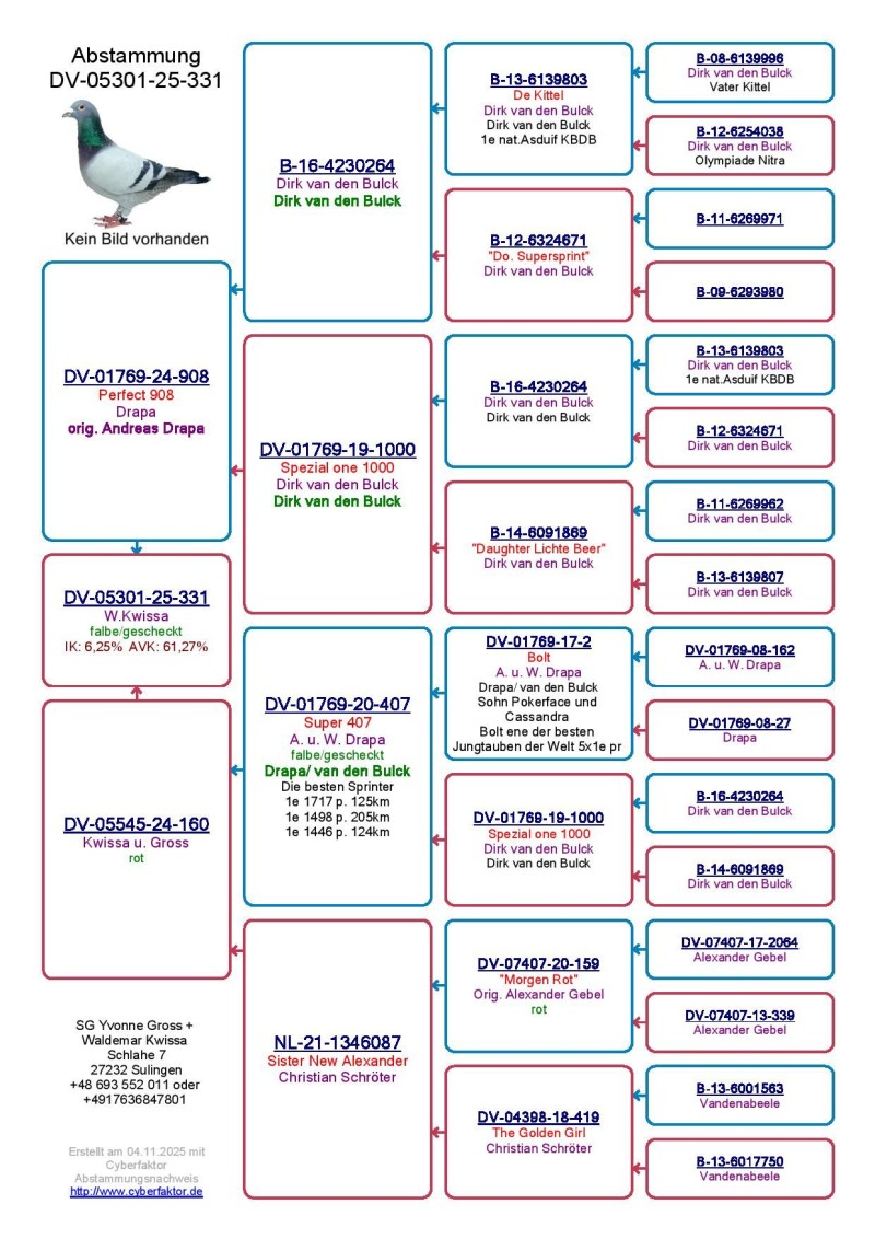 Opis: Oryginalny gołąb z hodowli Waldemar Kwissa. Fajne połączenie. Szczegóły pochodzenia w rodowodzie, karty własności będą dołączone do rodowodów. Więcej informacji pod nr tel.: 693552011. Koszt wysyłki od 1 do 4 szt150 zł
