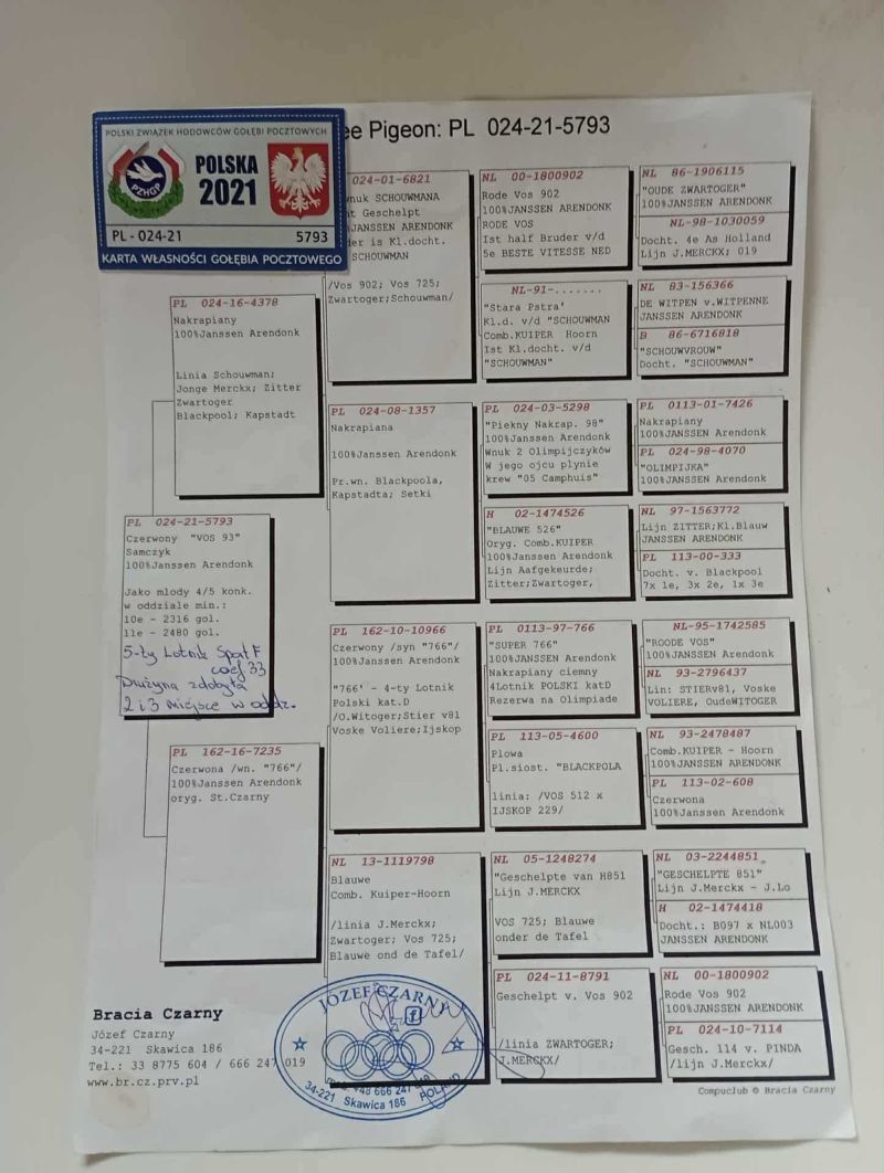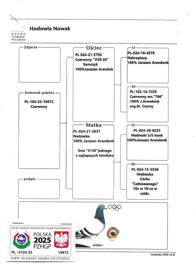 Szczegóły pochodzenia gołąbka w rodowodach rodziców możliwa wysyłka .Zapraszam