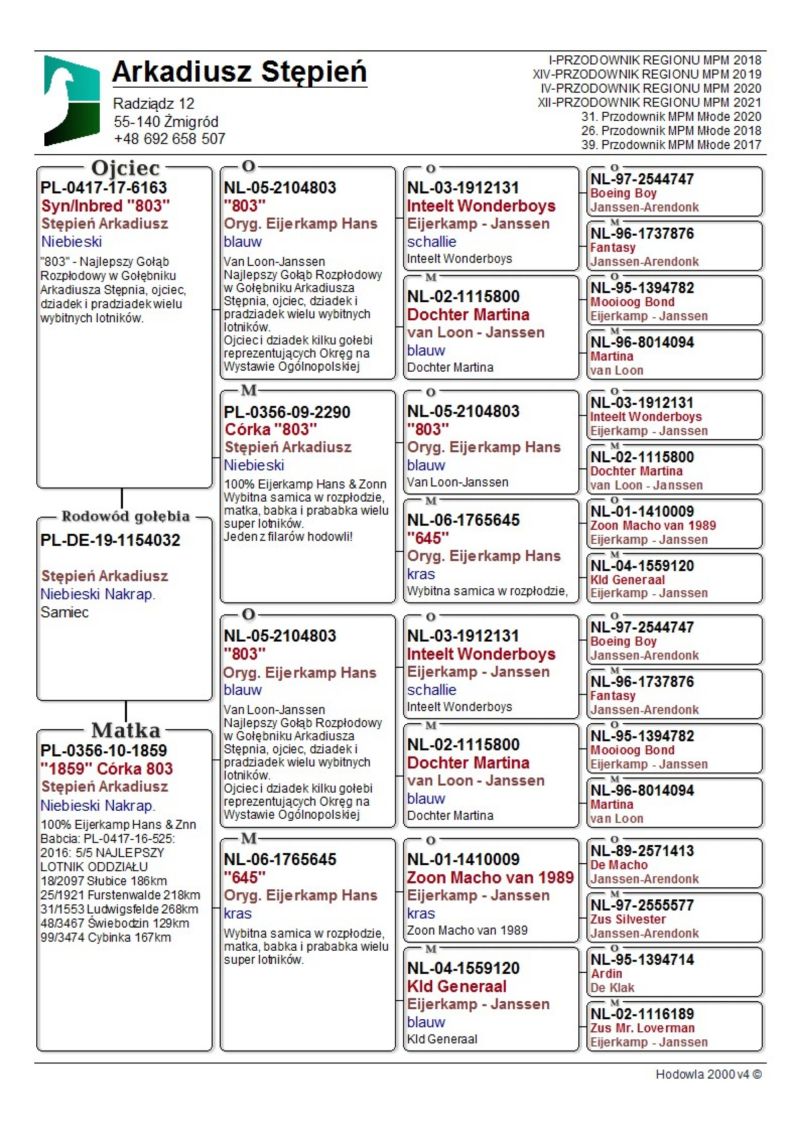 Opis: Oryginalny gołąb z hodowli Arka Stępnia. Szczegóły pochodzenia w rodowodzie. Odbiór osobisty lub na Wystawie Ogólnopolskiej. Proszę o kontakt telefoniczny przed zalicytowaniem. Więcej informacji pod nr tel.: +48 692 658 507