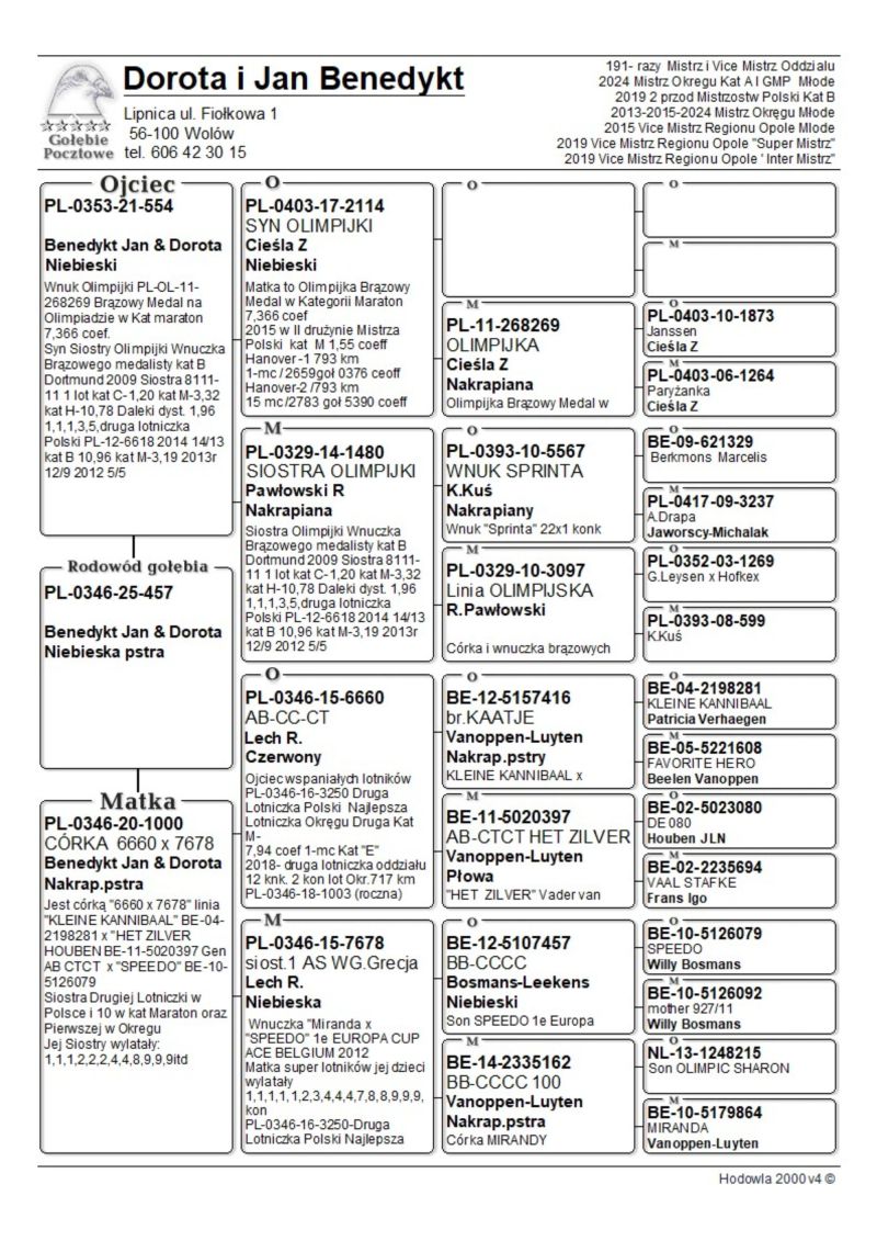 PL-0346-25-457 oryg. Benedykt Jan i Dorota 2024r. Mistrz Okręgu kat A i GMP Młode