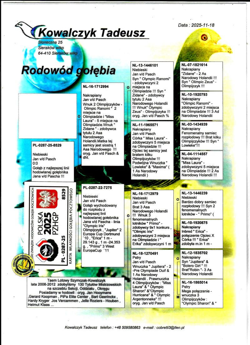 PL-0287-25-8529 Rewelacyjne połączenie gołębi z hodowli Jana v/d Pascha