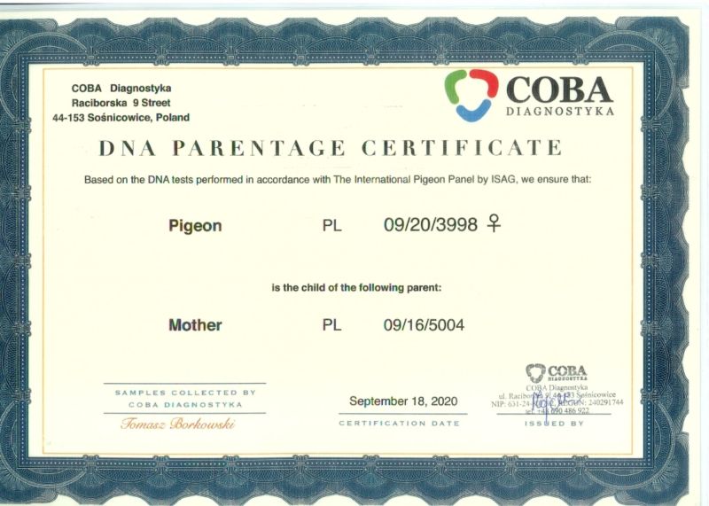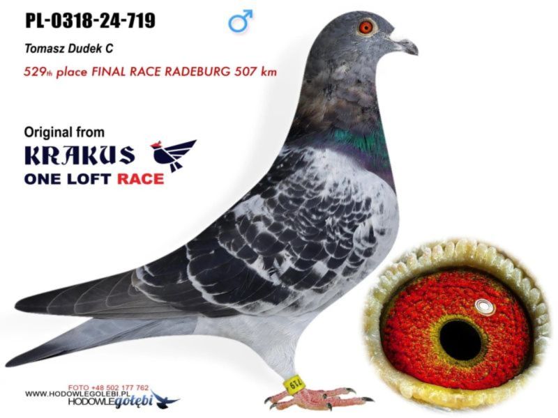 Opis: Na aukcji samczyk z bardzo dobrego połączenia gołębi typowo pod WG. Ojcem jest gołąb zakupiony po całym programie lotowym na WG Krakus, matką jest bardzo dobra samica rozpłodowa od kolegi Sławomira Rogali córka Diany - 2 Konkurs z Edynburga w Szkocji, została sprzedana do Indii. Jest to pełny brat Wiliama, który przeszedł cały program lotowy na OLR SuperCup gdzie gołębie były lotowane pod wiatr w sumie 11 lotów w tym 6 lotów powyżej 200 km. Wiliam został 42 Asem długiego dystansu. Preferowany odbiór osobisty woj. podlaskie, ewentualnie dostawa kurierem ok 150 zł, lub odbiór na wystawie.