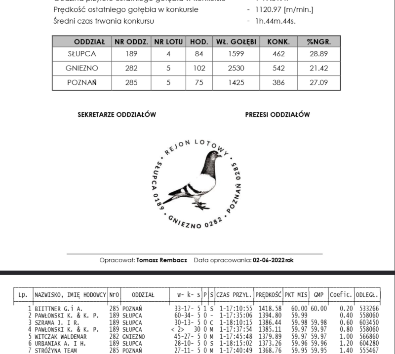 Opis: Fajny , dłuższy samczyk prawnuk naszego "461" , prawnuk również "9988" i "870" a co najważniejsze inbred na samca rozpłodowego nr 2 na naszym gołębniku - "791" !! "870" - matka 14196 , 2 as oddz kat A , 8701 - ojciec 2 x 10 gołąb z finału WG Kuźnica 2015 i 2016 , matka 17915 - wybitna samica rozpłodowa - babka dwóch mega lotników na PLGP u Kol Krzysztofa Mrowieca i wielu wielu innych innych. "791" - ojciec "ZigZag McQueen" - 117 poz w finale SAMDPR , ojciec "Lotniskowej" , najlepszej samicy rozpłodowej u Kol Krzyśka Kusia oraz dziadek 8755 - rezerwa na olimpiadę w kat olimpijskiej maraton oraz ojciec , dziadek i pradziadek wielu wybitnych gołębi rozpłodowych i lotowych na wielu gołębnikach !! "9988" - matka "Luny" , Casandry" , "17703" - super gołębi które razem ugrały na WG około 20 tyś zł, babcia 8127 - wygrała ponad 10 tyś zł w finale Pattaya OLR 2023/2024 oraz wielu wybitnych innych " gołębi lotowych i rozpłodowych "461" - liczba jedynek jego wnuków , prawnuków i oczywiście dzieci będzie około stu a kilkadziesiąt gołębi z 461 zajmowało top 10 w kat As w różnych kategoriach w różnych okręgach w Polsce- tylko w 2022 roku w 9 różnych oddziałach przeważnie prawnuki zdobywały 1 lokatę w oddz !!! Jego wnuczka została też na olimpiadzie w tym roku 4 gołębiem świata w kat H dla Kol Łukasza Reguły. !! Na screenie przykład jak potrafią siadać gołębie w oddz z linii 461 ... 3-prawnuk,4 -wnuk , 5-wnuk , 6 - roczna wnuczka - kat A 9 z groszem ma , 7 wnuk , 11 - wnuk oraz 15 - wnuk 461. oraz kolejny lot z 2020 roku : 1,2,3,5,7,8 wnuk oraz 15 prawnuk ? do tego roczna samiczka Kolegów Piotra I Marcina Żureckich z Kępna została 6 asem Polski w kat G ...tak leciała... 2 na 5200 g ze 174 km 8 na 4573 z 219 km 8 na 3583 g z 324 km 8 na 1764 g z 324 g 21 na 4535 g z 549 km - rej - coeff jak widać na zdjęciu 13,54 miała też szósty super lot była 25 na 4984 g coeff 5,02 1 goląb z Extra finału na WG Giewont 2022 dla Teamu Chudy-Molek to też linia "461" ojciec to syn mojej super wdowy 2161-12. 16 As Polski w kat F 2023 dla Teamu Dziedzina ?, Prawnuczka - 2 as okręgu Wałbrzych 2023 w kat M - coeff 4,84 , - dla Kol Kazimierza Goździejewskiego....od 2017 roku 30x mistrzostwo oddz w różnych kategoriach w tym 2019-2021 3 x z rzędu supermistrzostwo oddziału Poznań,....i wiele wiele innych na poziomie sekcji,oddziałów i okręgów w różnych częściach Polski.Więcej info na tel 601 877 544