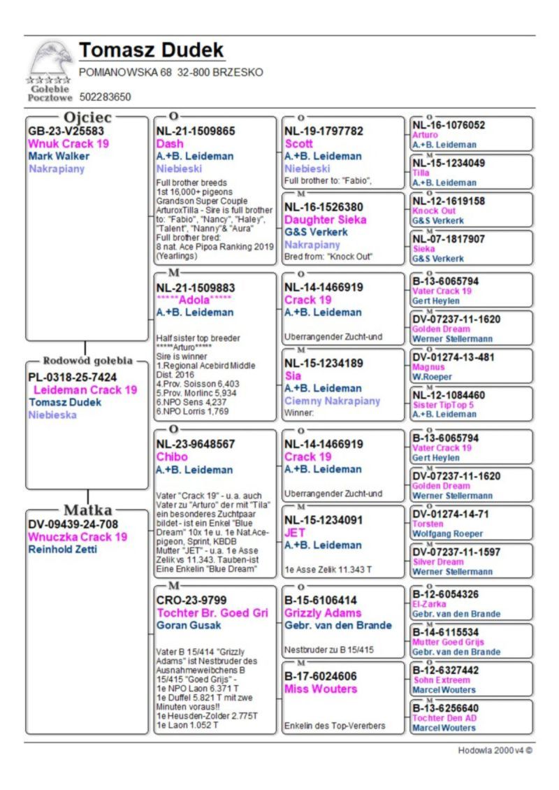 Opis: Mamy Państwu do zaoferowania gołębia 7424, Inbred Leideman Crack 19. Możliwość wykonania badań DNA na koszt kupującego. Więcej informacji pod numerem 502 283 650.