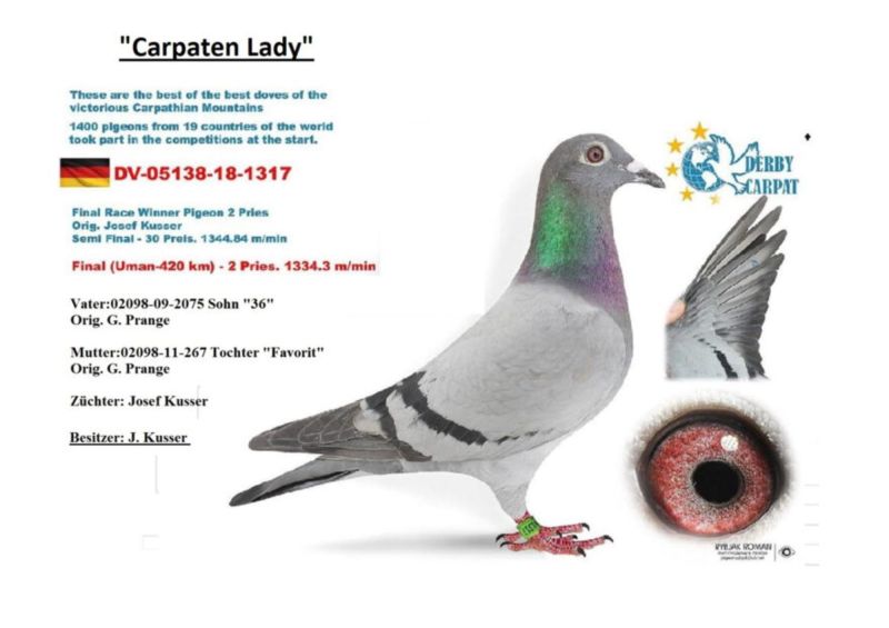 Opis: Oryginalny gołąb z hodowli kolegi Josef Kusser.Goląb przebywa jeszcze w Niemczech,możliwość transportu z Niemiec do Polski.Szczegóły pochodzenia w rodowodzie.Zakończenie aukcji 17.12.2025.