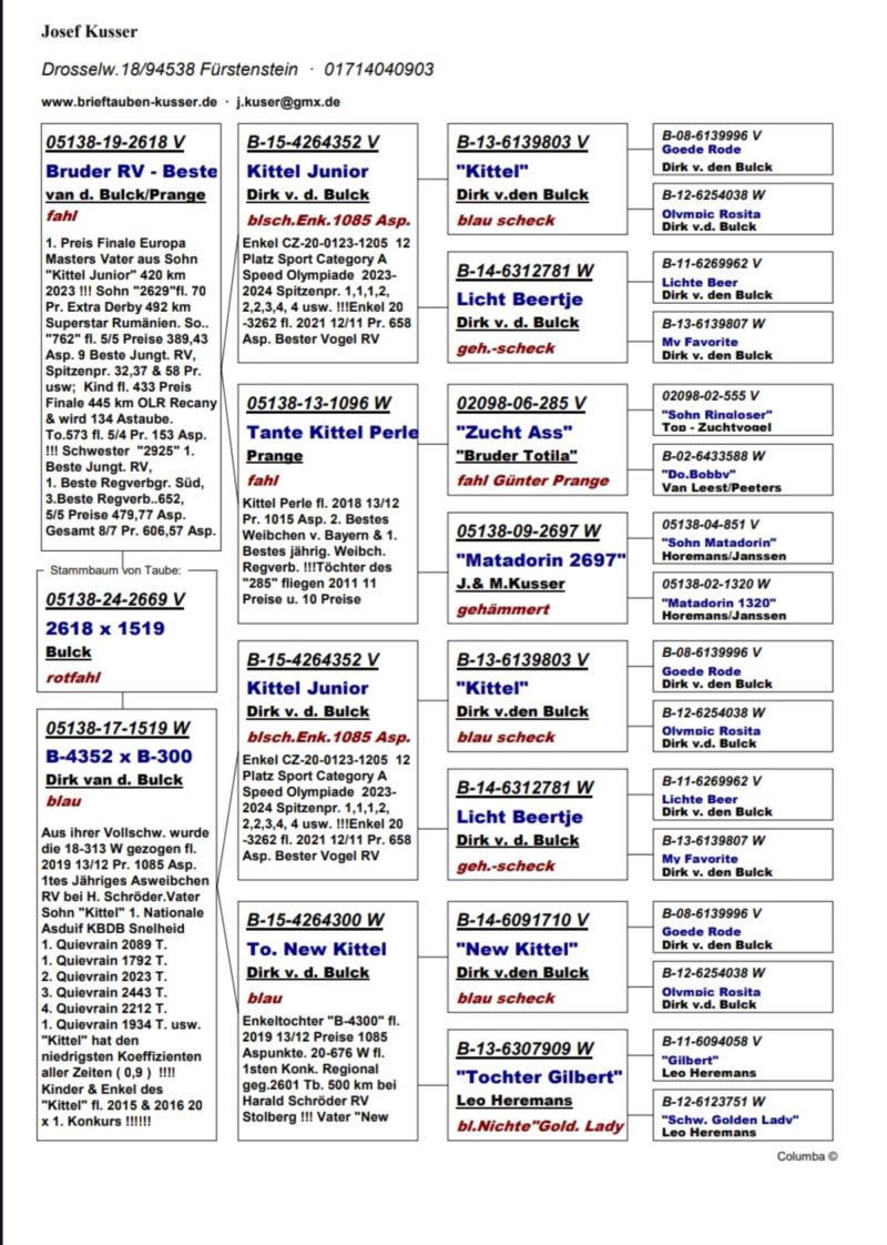DV-05138-24-2669 Dirk van den Bulck inbred B-15-4264352 najlepszego samca rozpłodowego kol.Josef Kusser