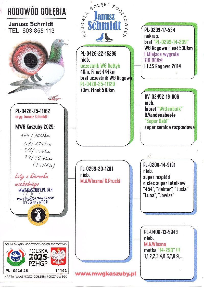 Opis: Gołąb (22 MIEJSCE z lotu Finałowego) brał udział w zawodach na Wspólnym Gołębniku KASZUBY. Więcej informacji w rodowodzie i załącznikach. Kontakt do Właściciela Gołębnika tel.601686344 (Sebastian Ostoja-Lniski). Informujemy poza tym, że rozpoczęły się zapisy na sezon 2026. Serdecznie zapraszam do rywalizacji..... Uwaga! Koszty związane z transportem pokrywa nabywca gołębia. W zależności od kuriera wynoszą one około 150zł. Można również odebrać gołębia osobiście. Powyżej sylwetki gołębia znajduje się video z jego prezentacją.