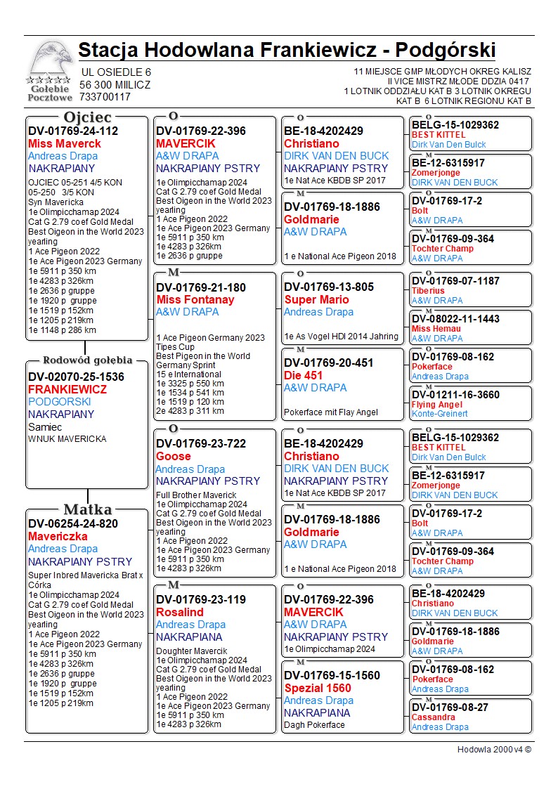Opis: STACJA HODOWLANA-LOTOWA FRANKIEWICZ PODGÓRSKI POSIADA NA SPRZEDAZ MŁODE GOŁEBIE Z GOŁEBNIKA ROZPŁODOWEGO Z GOŁĘBI ANDREAS DRAPA IKD LEPUCH DM PALARSCY B MICHALAK JAN HOOYNAMS J PASZEK PODANA PŁEC JEST ORIENTACYJNA WIECEJ INFORMACJI ZAPEWNIAMY TRANSPORT KOSZT 70ZŁ. PRZY KUP TERAZ DOSTAWA GRATIS DOSTARCZONE BEDA OSOBISCIE POD NUMEREM 733700117 GOŁABIE ZASZCZEPIONE PHA+OSPA TYLKO NA TEJ AUKCJI DOSTAWA GRATIS !!!
