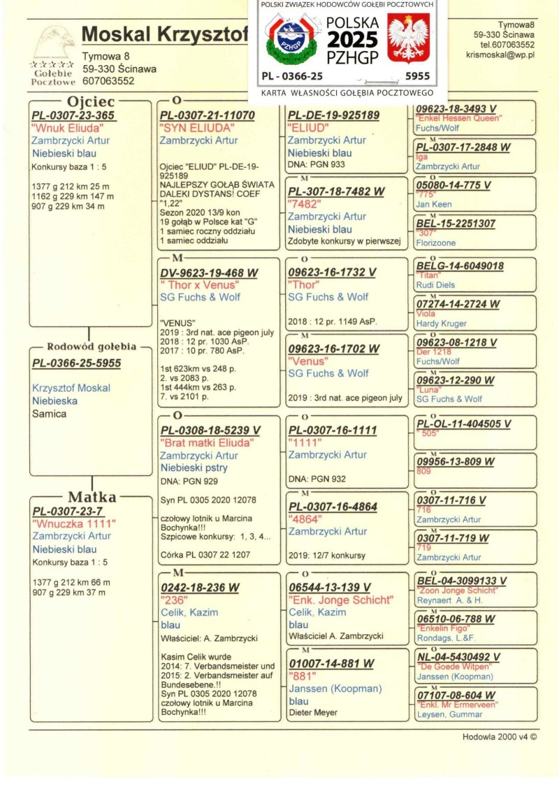 PL-0366-25-5955 - oryg. Krzysztof Moskal - wnuk Eliud x wnuczka 1111 100% Artur Zambrzycki