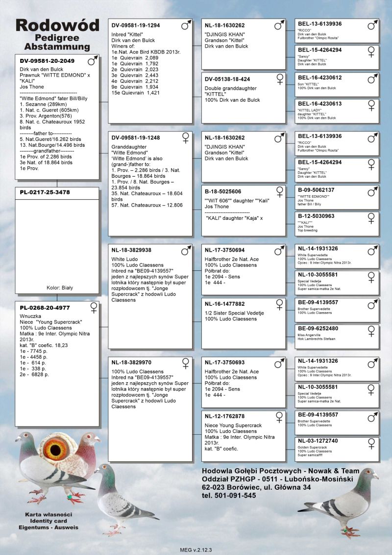 Oryginalny gołąb z hodowli Nowak & Team, szczegóły pochodzenia, rodowód poniżej.