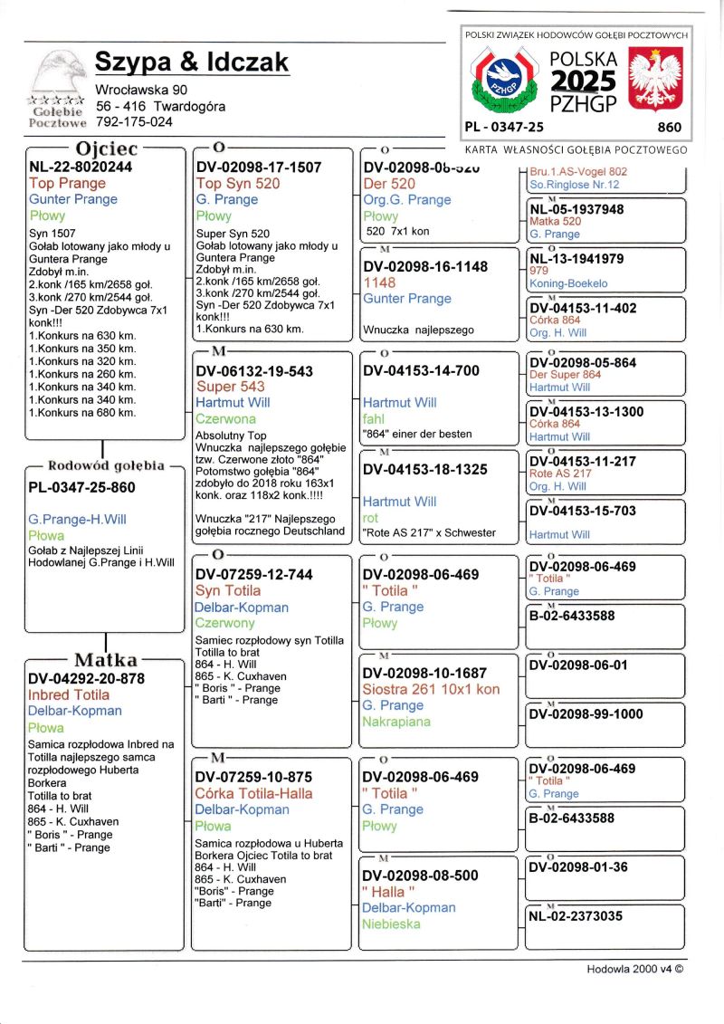 Opis: Profesjonalna hodowla z wieloletnim doświadczeniem, posiadająca w swoim stadzie materiał najwyższej światowej klasy. Więcej informacji w załączonych materiałach oraz pod nr tel. 792-175-024 Oferowany gołąb to prawdopodobnie SAMICA. Płeć pisana orientacyjnie Wysyłka 100 zł