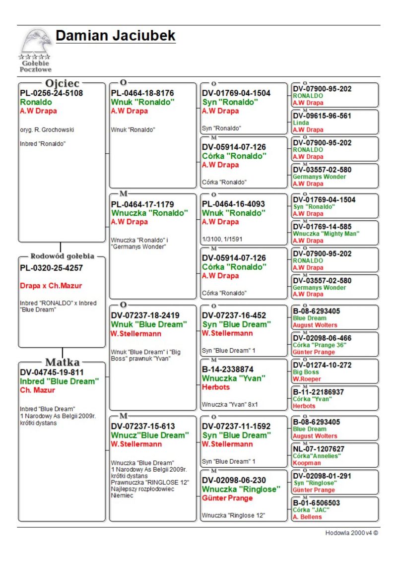 PL-0320-25-4257 - A.W.Drapa Inbred "RONALDO" x Ch.Mazur Inbred "BLUE DREAM"